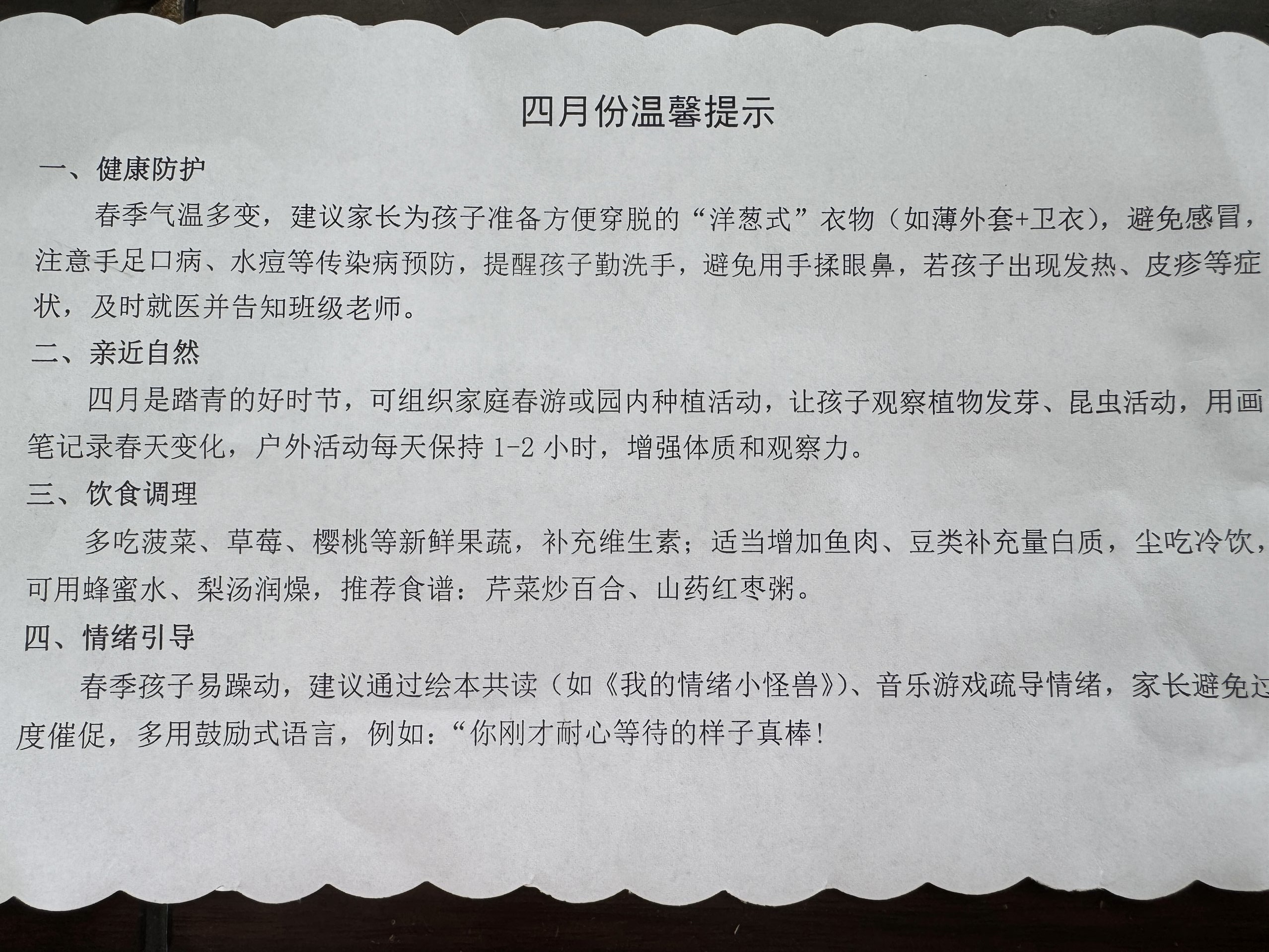 四月份温馨提示