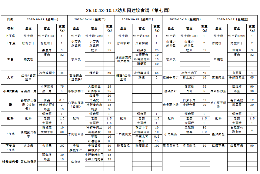 25.10.13-10.17幼儿园建议食谱(第七周)