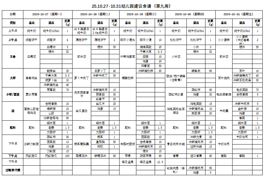 25.10.27-10.31幼儿园建议食谱(第九周)