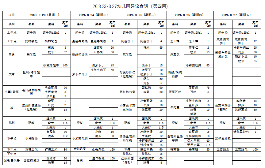 26.3.23-3.27幼儿园建议食谱(第四周)