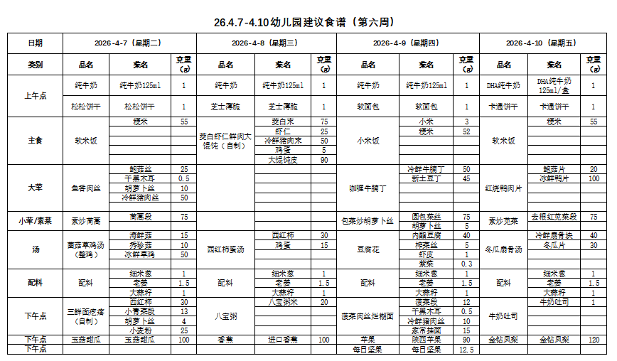26.4.7-4.10幼儿园建议食谱(第六周)